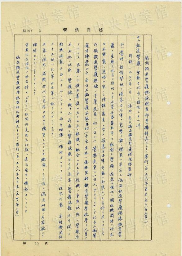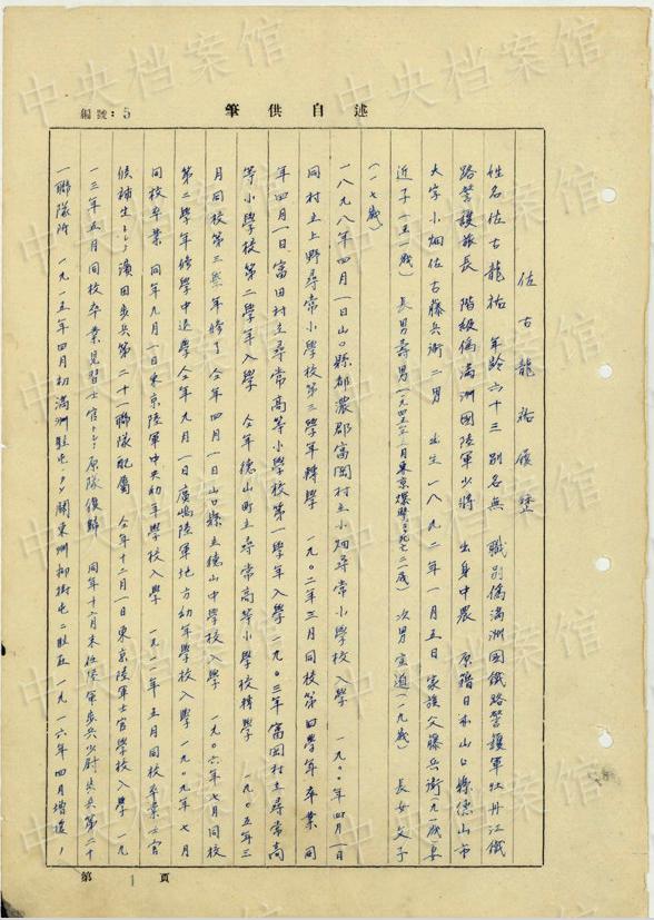 佐古龍祐の1954年12月の供述書によると、佐古は1892年山口県生まれ。1934年11月から中國(guó)東北部で中國(guó)侵略戦爭(zhēng)に參加し、偽満州國(guó)鉄道警護(hù)総隊(duì)総監(jiān)部科長(zhǎng)、吉林、牡丹江鉄路警護(hù)旅長(zhǎng)などを歴任し、1945年8月に捕虜となった。