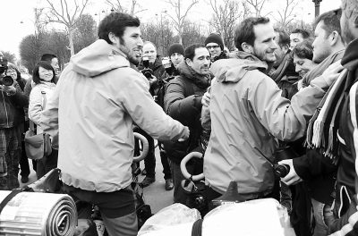パリを出発して、シルクロードに沿ってマルセイユへ南下し、イタリア、トルコ、イランなど10カ國(guó)を通過(guò)して、フランスのSimonさん(26歳)と物理エンジニアBasileさん(27歳)は、半年で1萬(wàn)5千キロを踏破して西安に到著した。「私たちは運(yùn)動(dòng)と冒険が好きで、フランス國(guó)內(nèi)でも何度も自転車(chē)で旅行した」とBasileさんは語(yǔ)る。