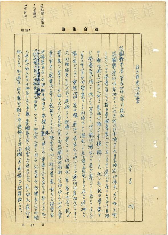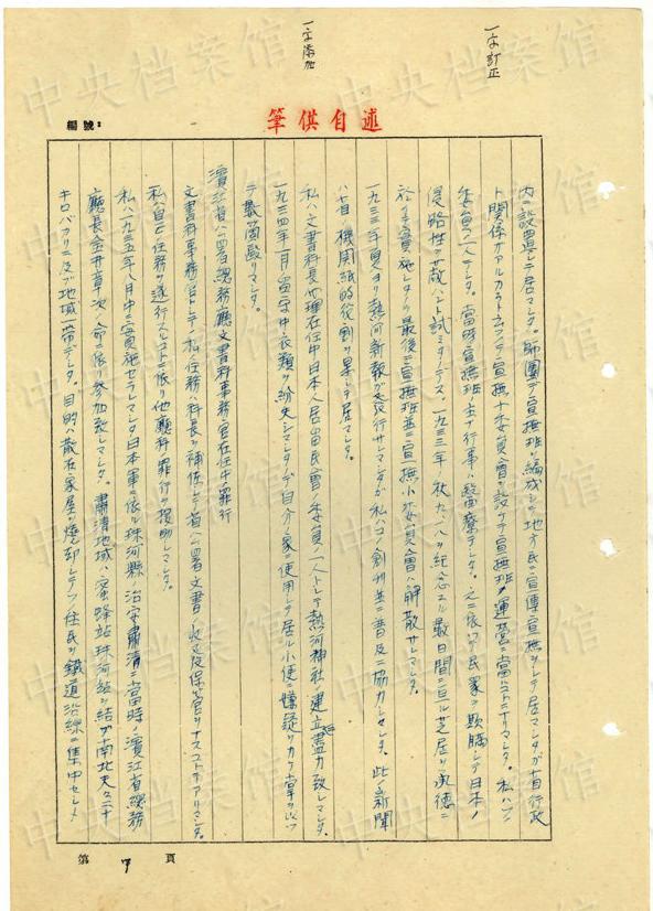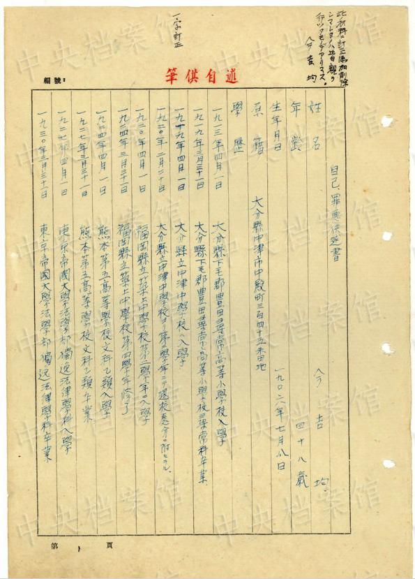 日本人戦犯?今吉均の1954年6月の供述書によると、今吉は1906年に日本の大分県で生まれた。1932年に奉天自治指導(dǎo)部の職に就いた。1943年、偽竜江省警務(wù)庁庁長(zhǎng)に任じられた。
