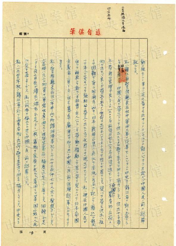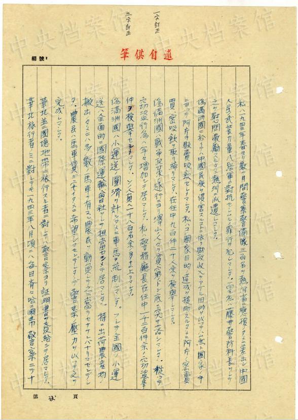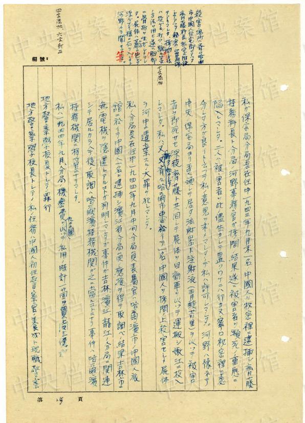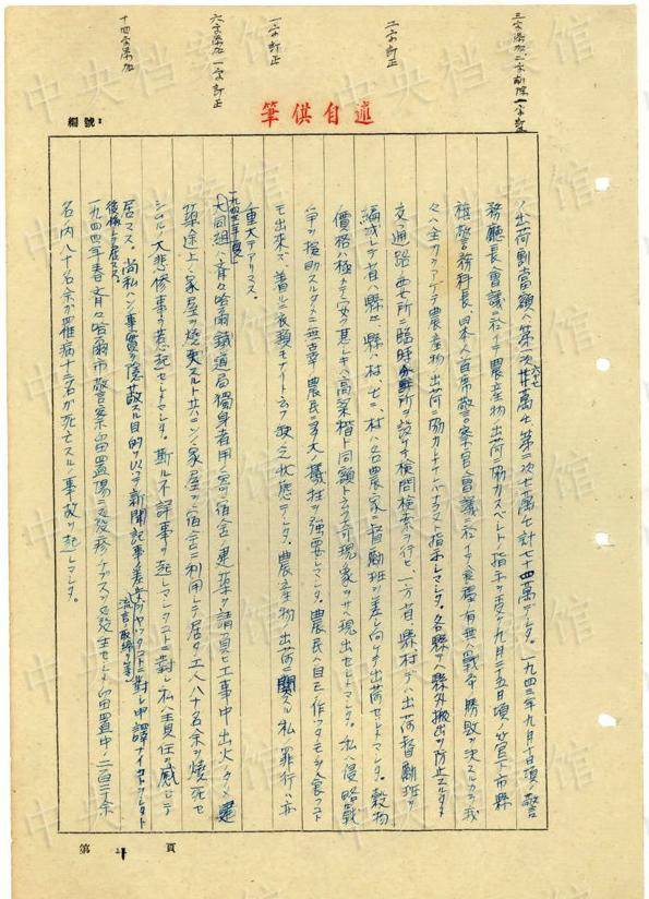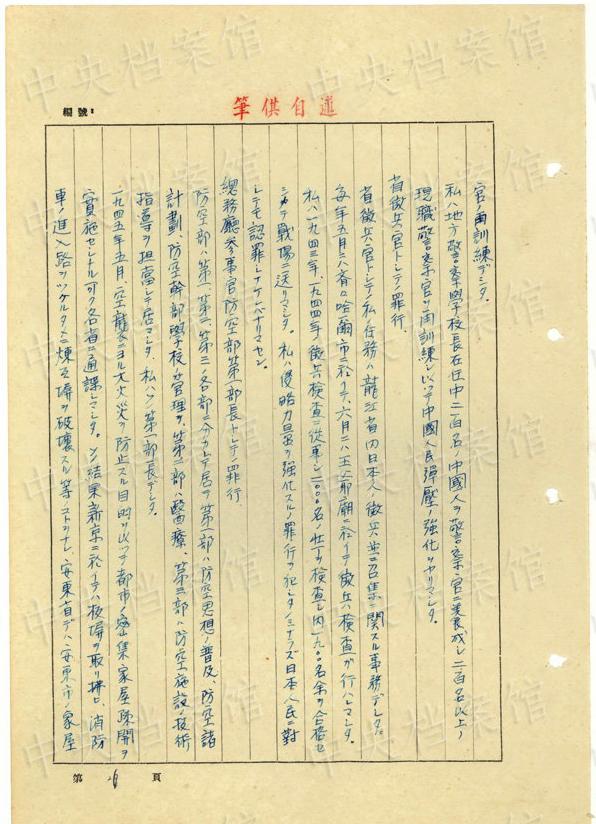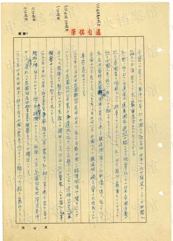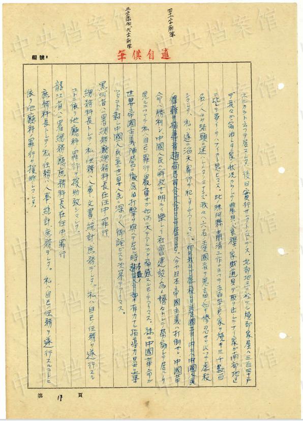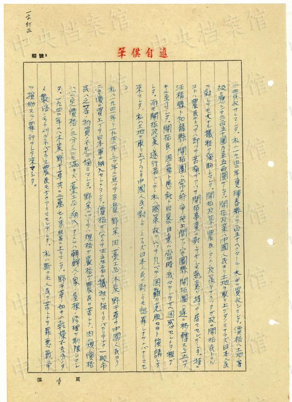 1943年9月には、「一名ノ中國(guó)人ヲ秘密裡ニ逮捕シ」、拷問(wèn)しても成果がないと、注射によって被害者を殺害し、死體を「嫩江ニ投入シマシタ」