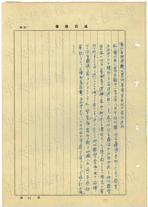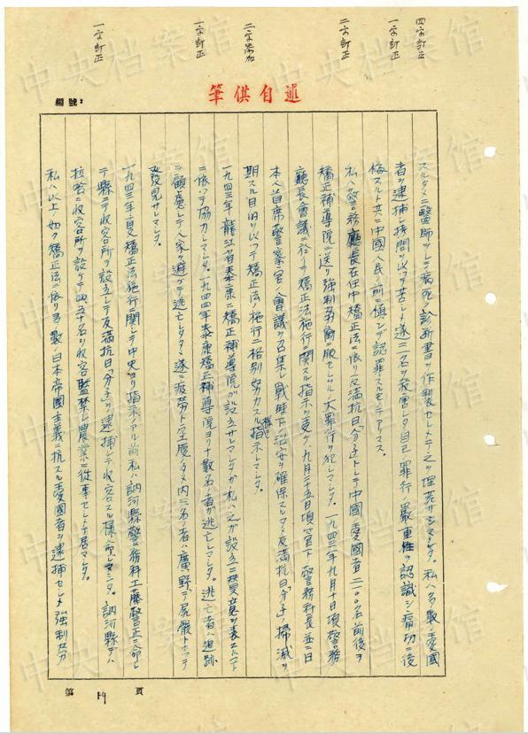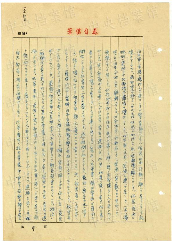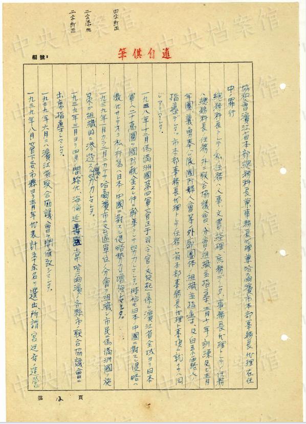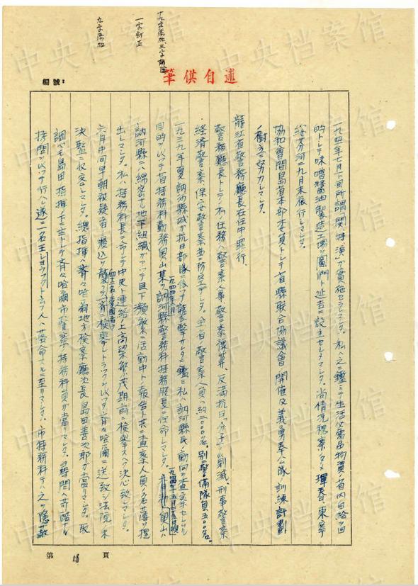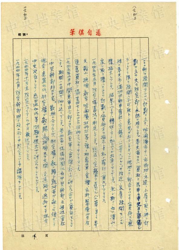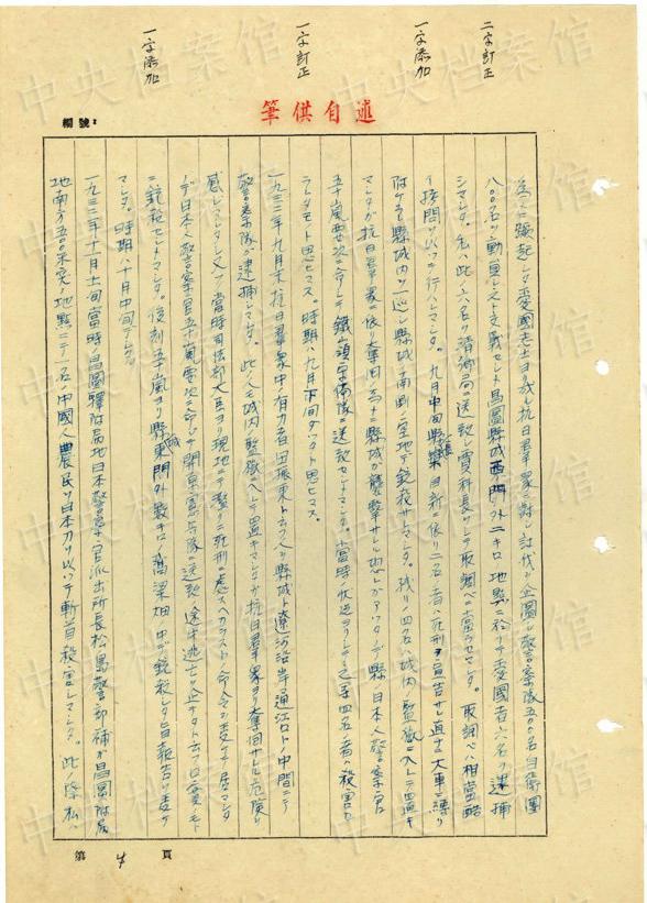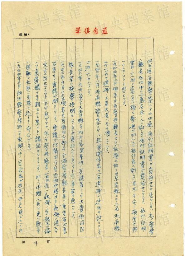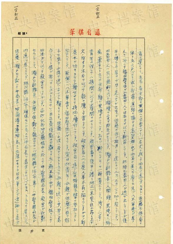 1943年9月には、「一名ノ中國(guó)人ヲ秘密裡ニ逮捕シ」、拷問(wèn)しても成果がないと、注射によって被害者を殺害し、死體を「嫩江ニ投入シマシタ」