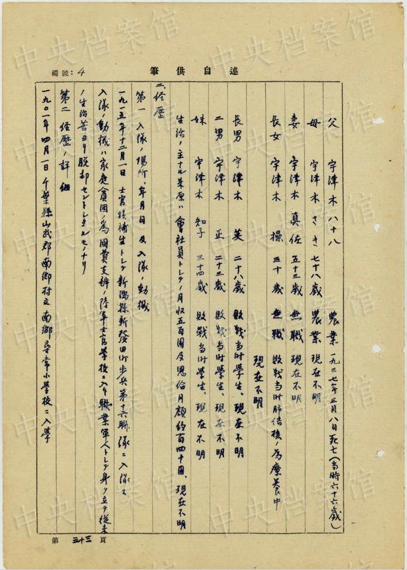 日本人戦犯29人目?宇津木孟雄の供述書(shū)公開(kāi) 生體病理実験に協(xié)力