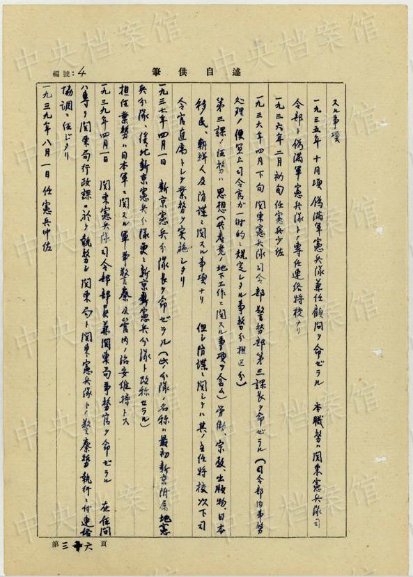 1937年11月には、新京憲兵分隊(duì)の「留置中ノ死刑該當(dāng)中國(guó)愛(ài)國(guó)者ヲ病理試験ノ為」、新京第二陸軍病院に引き渡させた?!复衰坞H自分ハ自動(dòng)車ニテ他出ノ途中田村伍長(zhǎng)ト該留置人ヲ憲兵分隊(duì)ヨリ陸軍病院前迄便乗セシメタルモノナリ」
