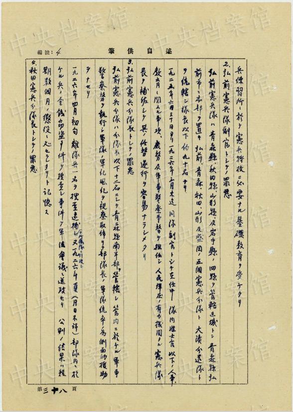 1938年1月には、同様の生體病理実験のため、「死刑該當(dāng)中國(guó)愛(ài)國(guó)者ヲ(中略)自分ハ安藤準(zhǔn)尉及田村伍長(zhǎng)ヲシテ新京第二陸軍病院小野軍醫(yī)ニ同病院ニ於テ引渡サシメタリ」