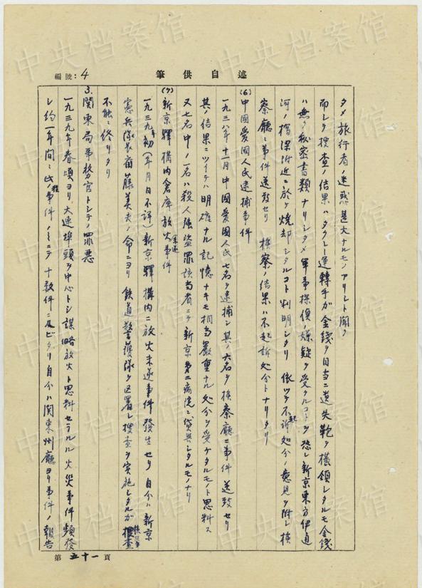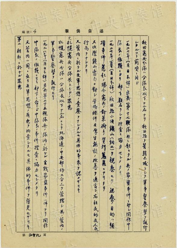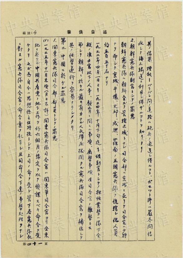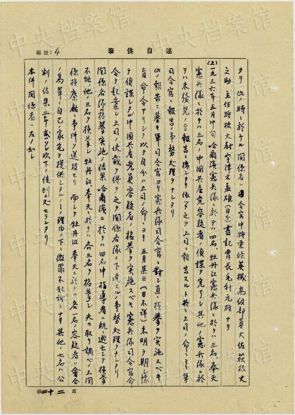 同11月には、同様の生體病理実験のため、「分隊(duì)ニ留置中ノ死刑該當(dāng)中國(guó)愛(ài)國(guó)者ヲ(中略)安藤準(zhǔn)尉及田村伍長(zhǎng)ヲシテ新京第二陸軍病院小野軍醫(yī)ニ同病院ニ於テ引渡サシメタリ」。さらに同月、「中國(guó)愛(ài)國(guó)人民七名ヲ逮捕シ其ノ六名ヲ検察庁ニ事件送致セリ(中略)一名ハ殺人強(qiáng)盜罪該當(dāng)者ニテ新京第二陸軍病院ニ貸與シタルモノナリ」(編集MA)