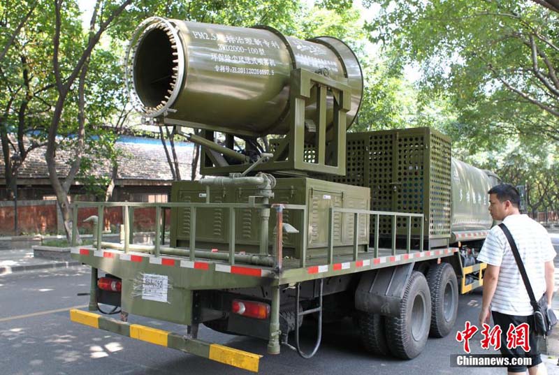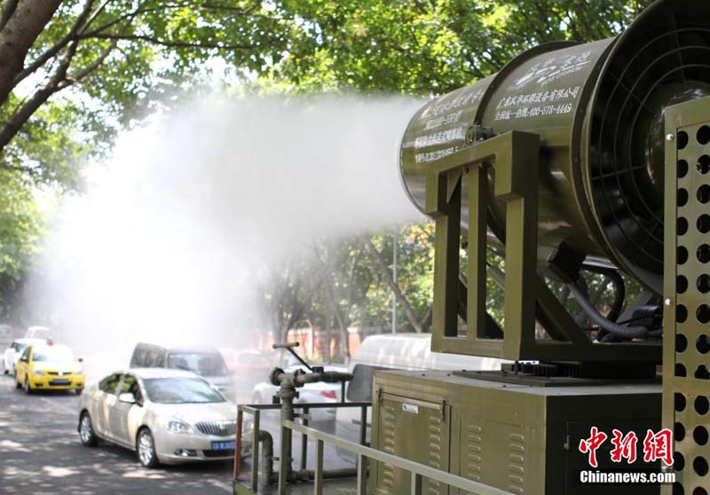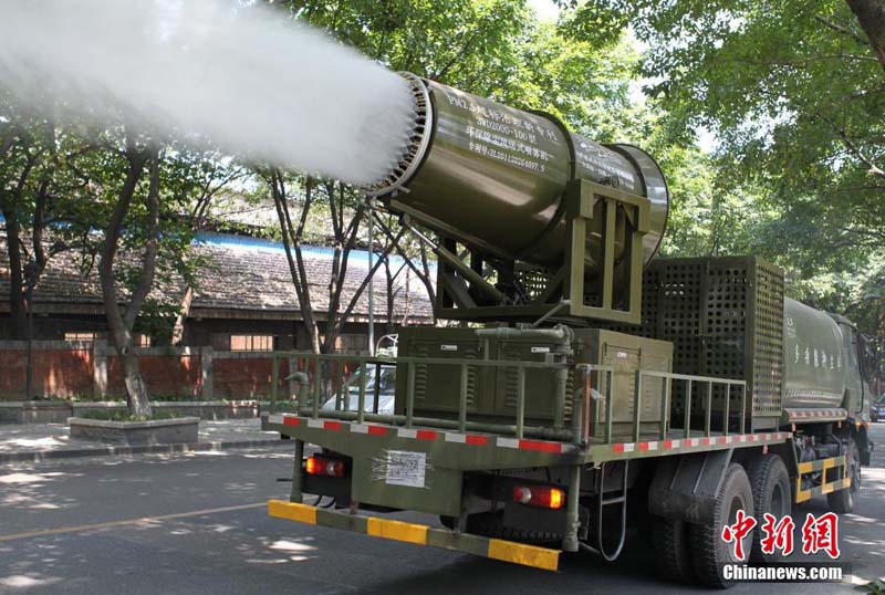 重慶の街角 「大砲」のような外見(jiàn)の新型降溫用散水車