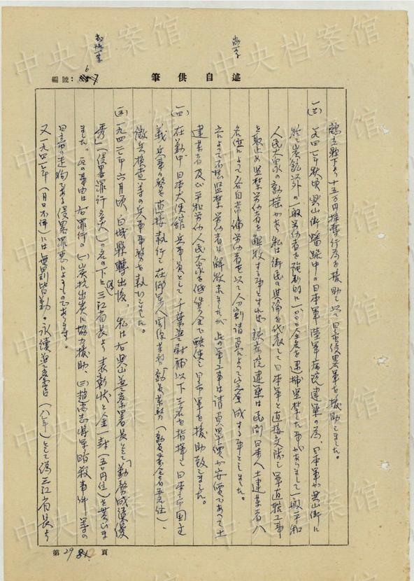 日本人戦犯30人目?田井久二郎の供述書公開 一般人民を虐殺(二)