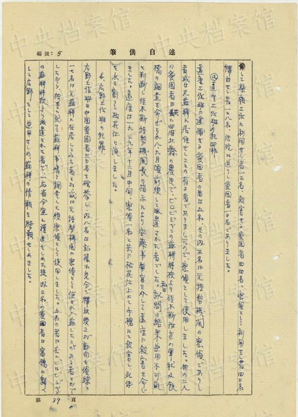 同年8月には、「関係愛(ài)國(guó)者六〇名以上を検挙、拷問(wèn)を以って訊問(wèn)、十七名以上の愛(ài)國(guó)者を法院に送り、その內(nèi)一〇名以上の愛(ài)國(guó)者を死刑を以って殺害せしめました」