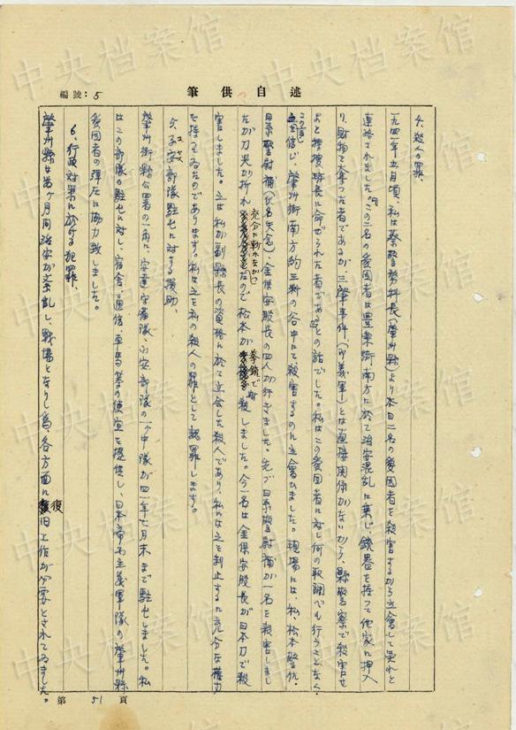 同年8月には、「関係愛國(guó)者六〇名以上を検挙、拷問を以って訊問、十七名以上の愛國(guó)者を法院に送り、その內(nèi)一〇名以上の愛國(guó)者を死刑を以って殺害せしめました」