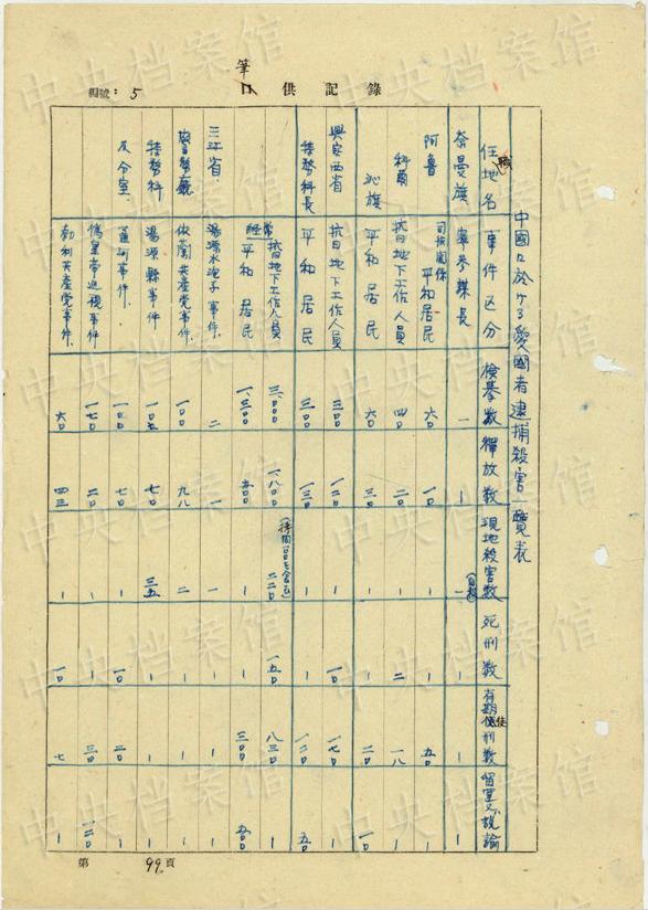 同年8月には、「関係愛國(guó)者六〇名以上を検挙、拷問を以って訊問、十七名以上の愛國(guó)者を法院に送り、その內(nèi)一〇名以上の愛國(guó)者を死刑を以って殺害せしめました」