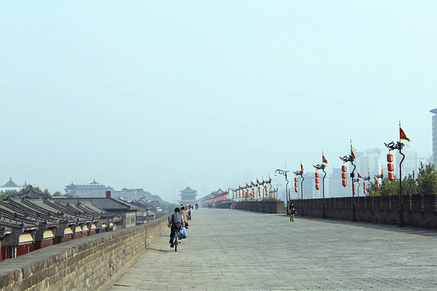 西安城壁は高さ12メートル、底部の幅18メートル、上部の幅15メートル、周長は13.74キロある。城壁は明の洪武7年から11年(西暦1374年~1378年)に隋?唐の皇帝の城を基盤として立てられたもので、中世後期の中國の歴史上最も有名な城壁の一つであり、中國で現(xiàn)存する保存狀態(tài)のよい古代の城壁建築の一つである。
