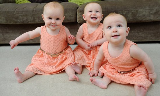 フィオンちゃんはピンク、マディソンちゃんはエメラルドグリーン、ペイジちゃんは紫のペディキュアが塗られている。3つ子の赤ちゃんはこの週末、初めての誕生日を迎えた。3つ子は毎週おむつを120枚、ミルクを84本も使用するという。ギルバートさんによると、3つ子を連れて外出するのは「軍事作戦」のような大騒ぎで、スーパーでは3つ子のために特製の3人乗りのショッピングカートを用意してくれたという。(編集YH)