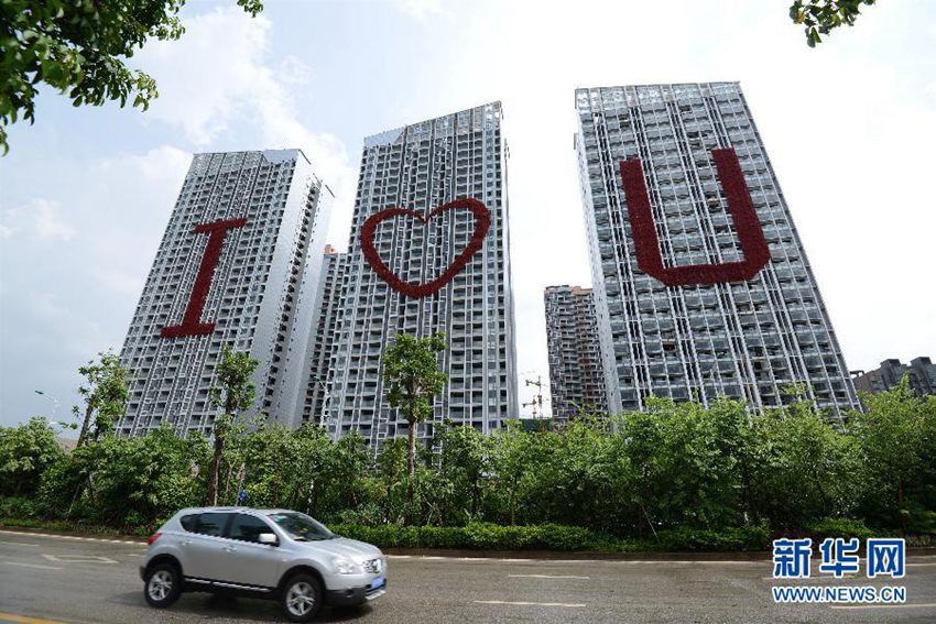 広西壯(チワン)族自治區(qū)南寧市ではこのほど、新築のビル3棟の上に巨大な「I」、「ハート」、「U」の形が描かれて注目を集めている?,F(xiàn)地のカップルたちの告白スポットとなっている。新華網(wǎng)が伝えた。(編集YH)
