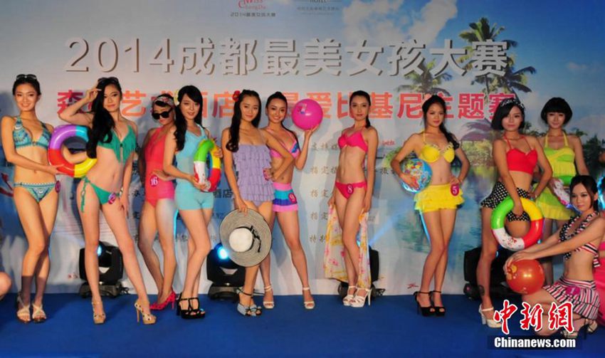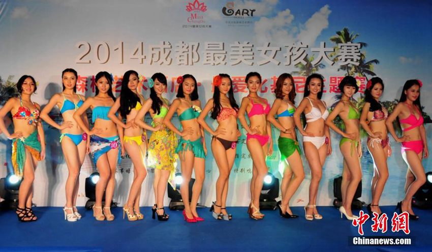 「2014年成都で最も美しい女性コンテスト」で10日夜、ビキニコンテストが行われた。成都の各大學から來ているミスキャンパスが色鮮やかな水著姿で登場し、會場に美の盛典をもたらした。中國新聞網(wǎng)が伝えた。(編集YH)