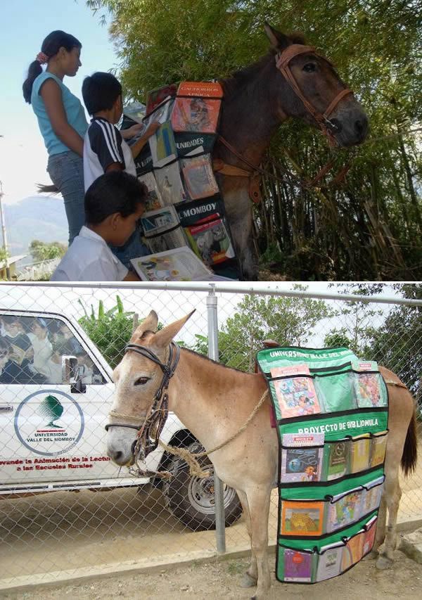 ラバの図書館。2009年、ベネズエラTrujillo州のある山の上で、大學(xué)が獨(dú)特のサービスを始めた。ラバが背負(fù)う移動(dòng)図書館がそれで、ラバが本を農(nóng)家の子どもに屆けるのだ。これは世界で「最も身近な」図書館かもしれない。