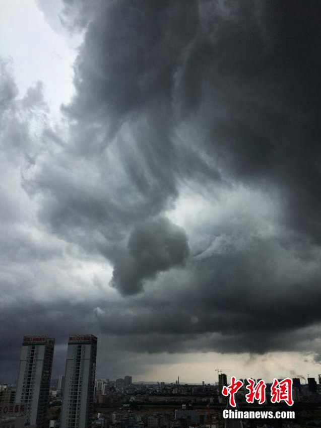 広西壯(チワン)族自治區(qū)南寧上空では12日午後1時ごろ、濃い雲(yún)が広がり、米國のSF映畫のワンシーンのようだった。巨大な雨のカーテンが空から降り注ぎ、バケツをひっくり返したような雨となった。午後1時から3時ごろまで強い雨は続き、最大降水量は43.9ミリに達した。中國新聞網(wǎng)が伝えた。(編集YH)