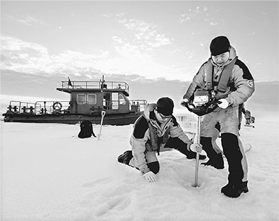極地観測船「雪竜號」の中國第6次北極科學(xué)調(diào)査隊(duì)は8月10日夜、北緯76度42分、西経151度4分の地點(diǎn)に短期ベースを設(shè)立し、調(diào)査を?qū)g施した。これは今回の北極科學(xué)調(diào)査の作業(yè)が、全面的に展開されたことを意味する。寫真は8月10日、多目的科學(xué)調(diào)査作業(yè)艇「黃河艇」に乗り流氷に上がった科學(xué)調(diào)査隊(duì)員が雪氷コアを掘削する様子。人民日報(bào)が伝えた。(編集YF)