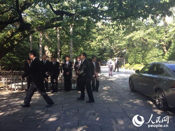 日本の「終戦記念日」にあたる8月15日、現(xiàn)地時(shí)間の午前8時(shí)前後、安倍內(nèi)閣の古屋圭司國(guó)家公安委員長(zhǎng)と新藤義孝総務(wù)大臣が靖國(guó)神社を參拝した。