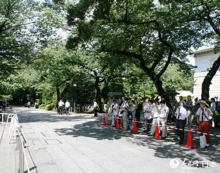 日本の安倍晉三首相は先週、今年の敗戦の日の靖國神社への參拝は見送り、自民黨総裁名義で玉串料を自費(fèi)で奉納するとメディアを通じて発表した。このため例年と比べ、靖國神社境內(nèi)はややひっそりとしている。靖國神社を參拝する組織や個人も少し減少した。