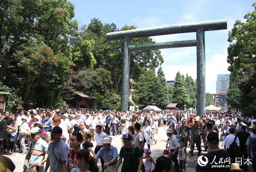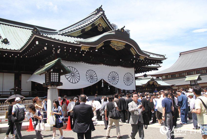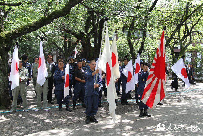 8月15日は日本の敗戦日だ。今年の15日に安倍內(nèi)閣の古屋圭司國(guó)家公安委員長(zhǎng)と新藤義孝総務(wù)大臣ら閣僚3人は靖國(guó)神社を參拝したほか、右翼団體やそれらの右翼団體を支持する人も靖國(guó)神社に現(xiàn)れた。(編集LX)