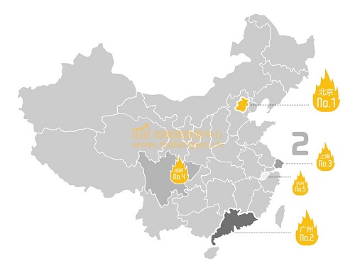 螞蜂窩のデータによると、海外のホテルを予約したユーザー數を都市別に見た場合の上位5都市は順次、北京、広州、上海、成都、杭州