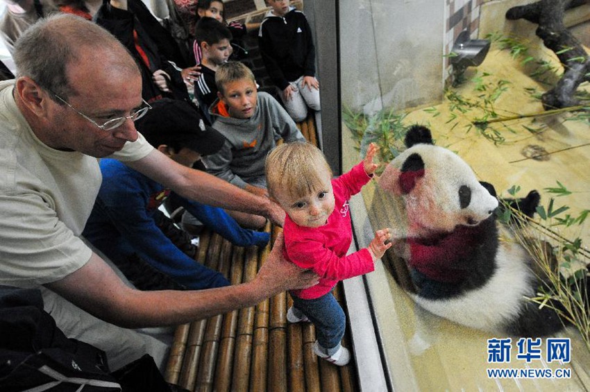 寫真はオーストリア?ウィーンのシェーンブルン動物園で14日、パンダ館を見學(xué)する市民。オーストリア?ウィーンで誕生したパンダの「福豹」は同日、シェーンブルン動物園で1歳の誕生日を迎えた。「福豹」は中國がオーストリアに貸し出しているパンダのペア「竜徽」と「陽陽」がウィーンで生んだ3頭目のパンダで、2頭の兄「福竜」、「?;ⅰ工悉工扦?歳になった後、中國に戻っている。新華網(wǎng)が伝えた。(編集YH)