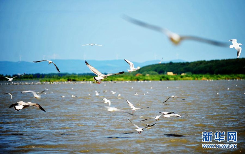 興凱湖は中國とロシアの國境に位置する湖で面積は4300平方キロ以上ある。興凱湖濕地は國際的にも重要な濕地で総面積6千平方キロ以上。國連ユネスコの人間と生物圏計畫(MAB)の保護ネットワークに組み込まれた天然の遺伝子のプールだ。統(tǒng)計によると興凱湖には高等植物700種類近く、國家1級保護鳥類9種類、2級保護鳥類41種類が生息し、毎年雁や鴨、鴎など數(shù)十萬羽がここで繁殖する?!该坤筏ぶ袊?jié)竦芈眯肖未笮凸婊顒鹰哎氅`プと共に13日、中國の三江平原濕地の重要な一部である興凱湖濕地を訪れ、豊かな生物の多様性を目撃した。(編集YH)