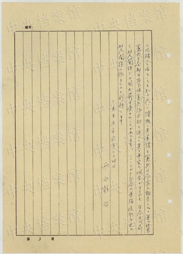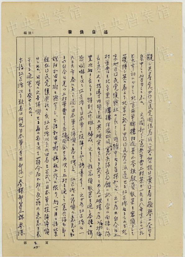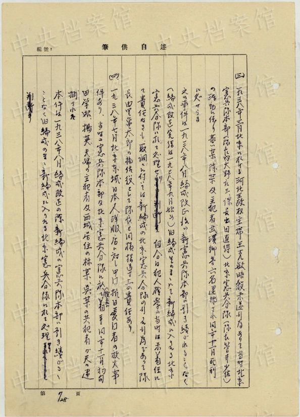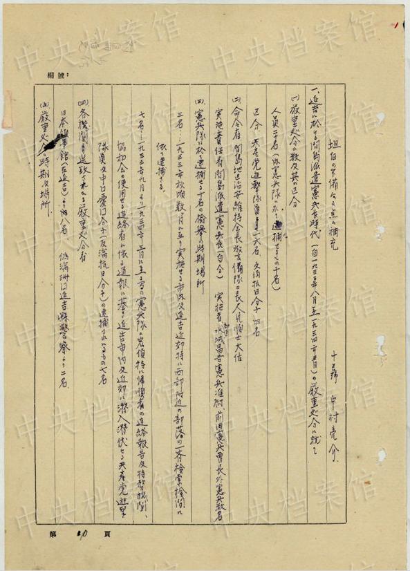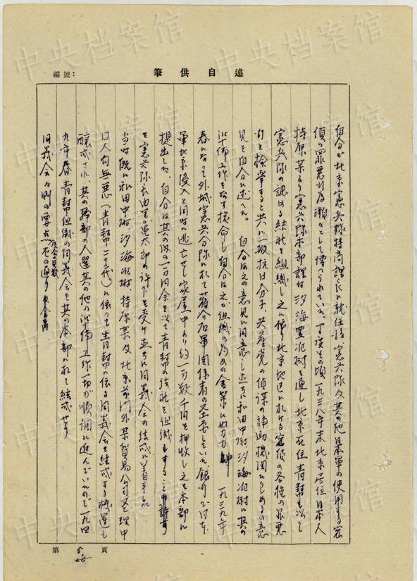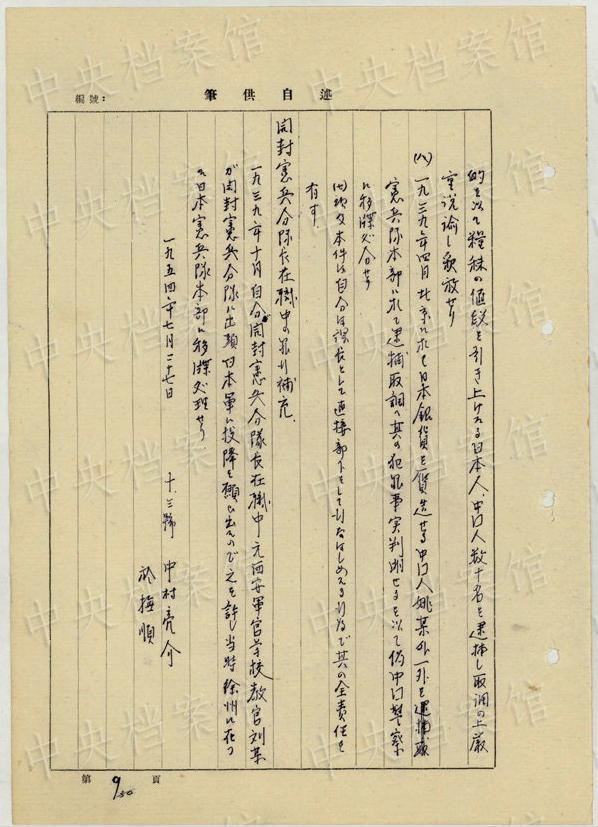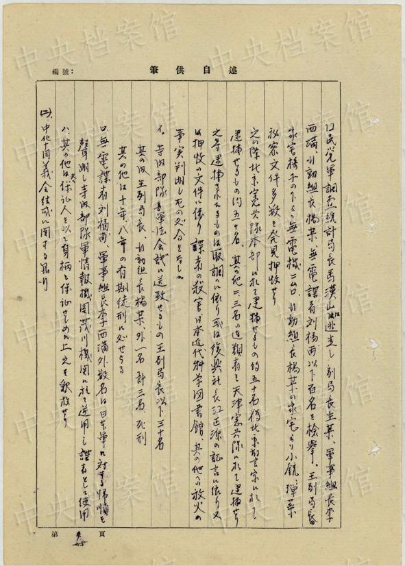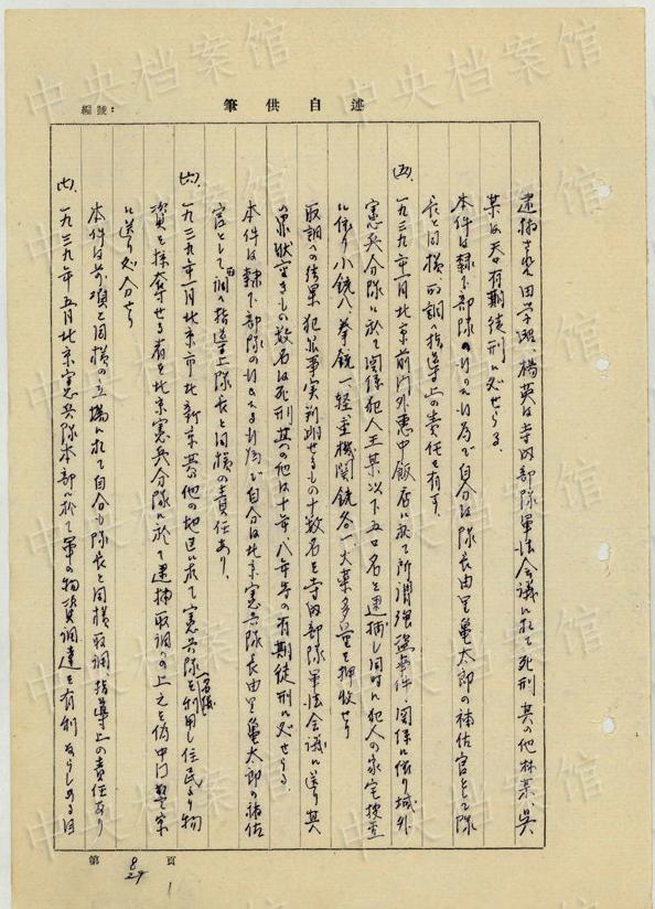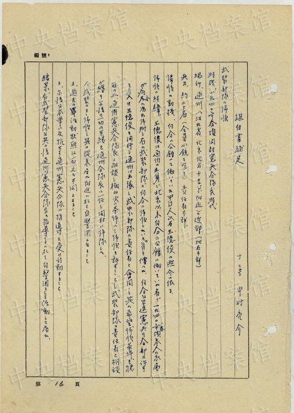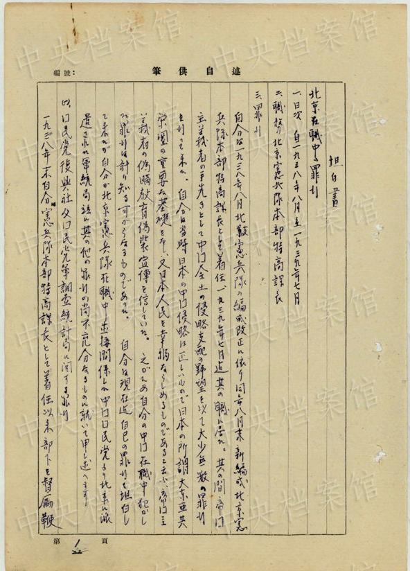 中央公文書(shū)館は16日、日本人戦犯?西永彰治の中國(guó)侵略犯罪の供述書(shū)を公開(kāi)した。