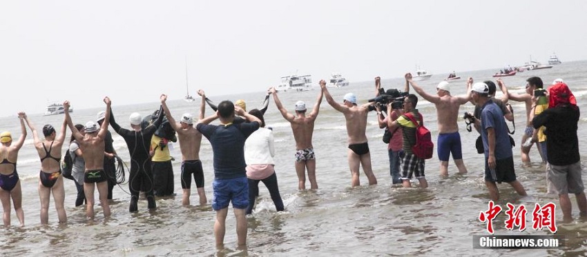 中國大陸部と臺(tái)灣地區(qū)から各7人の水泳選手が18日正午、臺(tái)灣?新竹南寮漁港から対岸の福建省平潭までをリレーで泳ぎ、水泳による臺(tái)灣海峽橫斷という歴史的快挙を成し遂げた。中國新聞網(wǎng)が伝えた。(編集YH)