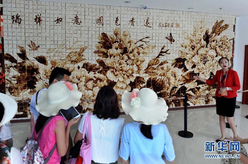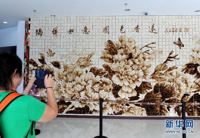2014年青島世界園蕓博覧會園蕓文化センターの入り口に掲示された、長さ7メートル、幅3メートルの大型水墨畫の牡丹國畫「瑞祥如意國色香遠」が注目を集めている。伝統(tǒng)的な畫仙紙上の作畫とは異なり、同作品はトースト2千枚以上を使い、焼付けなどの技法を使って「描かれ」ている。新華網(wǎng)が伝えた。(編集YH)