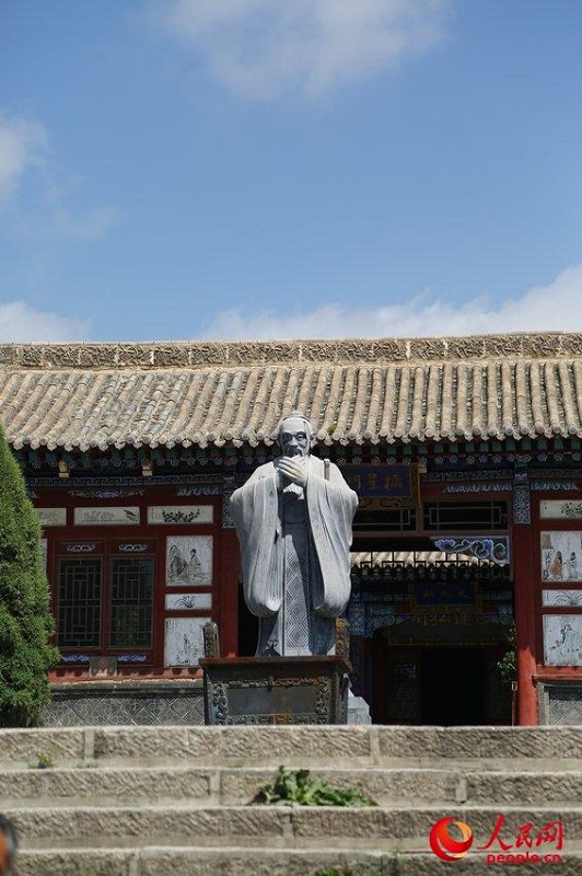 古都の主要道路の中央には、小さな學堂が靜かに佇み、繁華街における隠者のような風格だ。ついたてを回ると、孔子の石像がそびえ、両側から子供たちの高らかな朗読の聲が聞こえてきた。繁華街に、清々しい味わいがもたらされた。