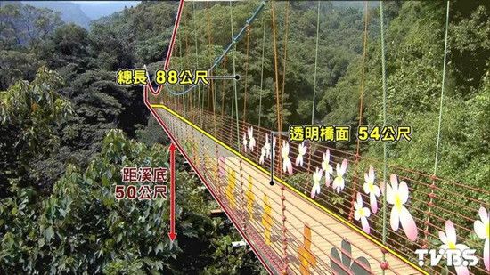 この吊橋は臺灣南投県信義郷に位置する全長88メートルのもので、透明な部分は54メートル、川の底から50メートルの高さにある。多くの人がいち早く體験に訪れ、足元にはっきり見える渓流の流れのスリルを楽しんだ。中國新聞網(wǎng)が臺灣TVBS報道として伝えた。(編集YH)