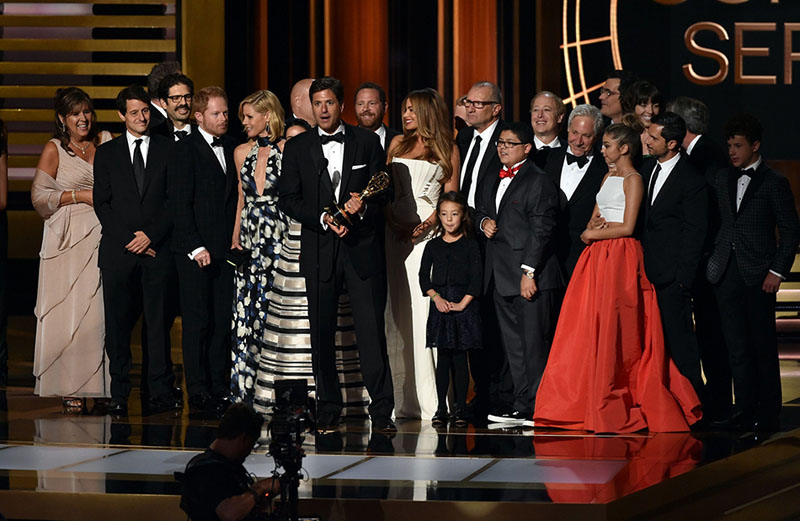 米國の第66回プライムタイム?エミー賞受賞式が25日夜、ロサンゼルス市中心のノキアシアターで行なわれた?!弗芝欹ぅ螗?バッド」が連続ドラマ部門、「モダン?ファミリー」がコメディ部門で受賞した。新華社が伝えた。(編集YH)