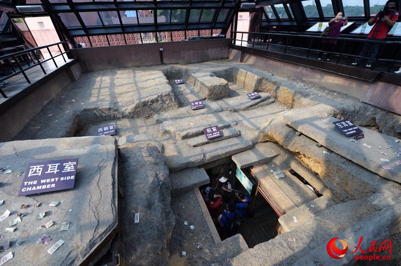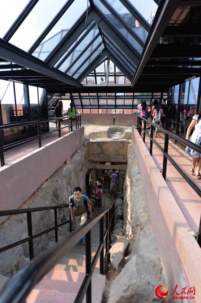 1983年6月9日、同市にある象崗山の工事現(xiàn)場(chǎng)で、大きな石板が見(jiàn)つかり、現(xiàn)場(chǎng)責(zé)任者の連絡(luò)を受けた當(dāng)時(shí)の考古學(xué)チームの隊(duì)長(zhǎng)?黃淼章さんがメンバー2人と現(xiàn)場(chǎng)に駆け付けた。その後の発掘調(diào)査で墓と分かり、そのベールが少しずつはがされた。これは、西漢(紀(jì)元前206年-8年)初期の南越國(guó)の第二代國(guó)王?趙眜の墓で、中から貴重な文化財(cái)1萬(wàn)點(diǎn)以上が出土した。同墓は、河北省の満城漢墓や湖北省長(zhǎng)沙市の馬王堆漢墓と共に、漢代考古學(xué)の三大発見(jiàn)と呼ばれている。(編集KN)