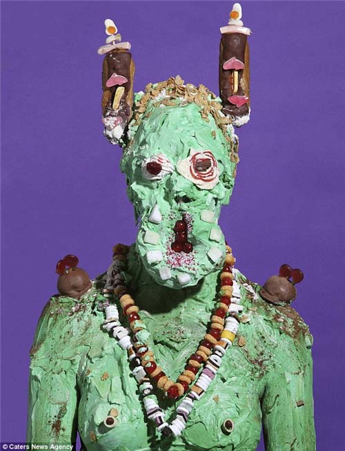 これらのポートレートを制作したアーティストのJames Ostrer氏(35)は、「ジャンクフードが人々に及ぼす影響を表現(xiàn)したかった。ジャンクフードの材料を使って、さまざまな気味の悪い怪物を作り上げた」と話した。