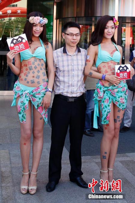 中國インターネット大會2014が開幕 コンパニオンの體に2次元コード (2)