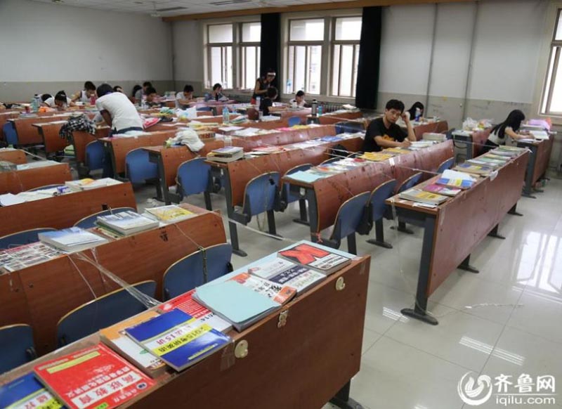 新學(xué)期が近づくのにともない、多くの大學(xué)では大學(xué)院入試に臨む學(xué)生たちが早めに大學(xué)に戻り、2015年の大學(xué)院入試に備えている。済南大學(xué)西キャンパスでは26日、大學(xué)院入試に備える學(xué)生たちによる座席の確保が目立ち、チェーンやワイヤー、ガムテープ、本、ひいては板やレンガ、生理用品などを使う人も出現(xiàn)している。インターネット利用者からは「命がけの勉強(qiáng)だ」と驚嘆の聲が寄せられている。斉魯網(wǎng)が伝えた。(編集YH)