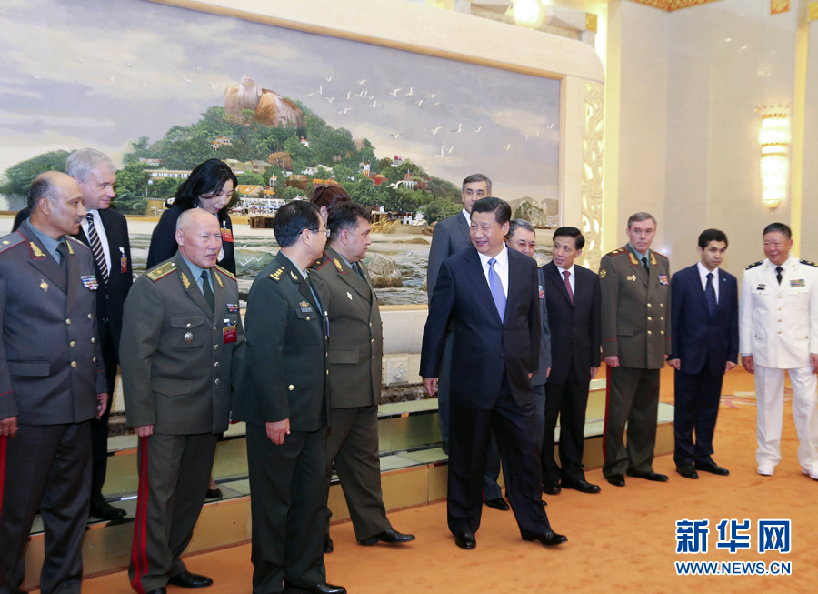 習(xí)近平國家主席(中央軍事委員會(huì)主席)は28日、上海協(xié)力機(jī)構(gòu)加盟國軍參謀総長會(huì)議に出席するため訪中したカザフスタン、キルギス、ロシア、タジキスタン、ウズベキスタンの參謀総長と人民大會(huì)堂で會(huì)談した。