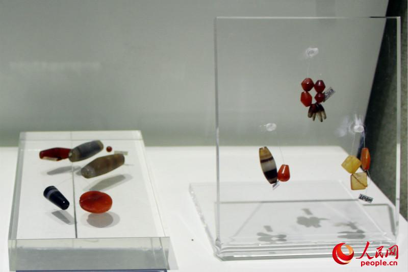 透き通った精微なアクアマリンのネックレス、精致に造られた黃金製チェーンブレスレット、色とりどりの美しさを放つアメジストのロングチェーン――。これらは決して、町の店舗で売っている高級(jí)ファッションジュエリーではない。2千年以上前に建造されたお墓の中から出土した、漢代裝飾品の數(shù)々だ。これらの精巧で美しい裝飾は、海上シルクロードからはるばると海を渡り中國にやって來た。その後、土の中で數(shù)千年の眠りについたが、今もなお燦然と輝いている。さあ、広西チワン族自治區(qū)北海市合浦漢墓博物館で、漢代海上シルクロードの豪華絢爛たる逸品の數(shù)々を心ゆくまで観賞してみよう。人民網(wǎng)が伝えた。