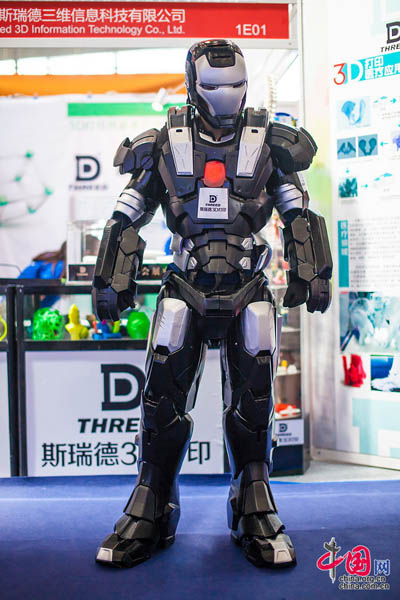 | 會(huì)場(chǎng)で3Dプリント技術(shù)を使って作られたアイアンマン。 |