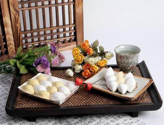 韓國にも獨(dú)特の中秋の食品、隣國の朝鮮と同じ松餅が存在する。松餅は半月のような形で、米粉を使い、餡には餡子や粟、ナツメなどを使う。作る時に松の葉を敷くことからこの名がついた。中秋の日には各家庭で松餅を作り、また互いに贈りあう。