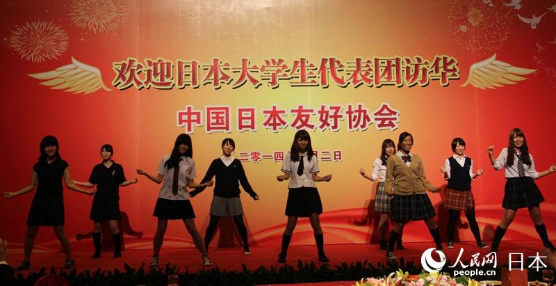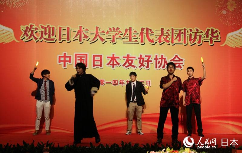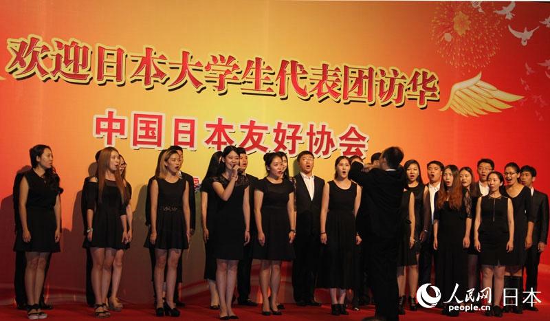 歓迎パーティーでは、中日の大學(xué)生が、歌やダンスなどを披露した。中央民族大學(xué)の學(xué)生は、民謡による獨唱や合唱、モンゴルの民族楽器馬頭琴の演奏など少數(shù)民族の演目を披露した。一方、日本の大學(xué)生らは、「世界に一つだけの花」を日本語と中國語で合唱したほか、アニメのテーマソングも披露した。どの曲も両國の大學(xué)生がよく知っている曲で、言語の壁を越えて、心が一つとなった。最後に、日本の軽快な音楽に乗って、浴衣を著た學(xué)生らが登場し、中日の大學(xué)生が共に盆踴りを踴って、日本の夏の雰囲気を體験した。