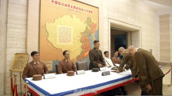 南京軍區(qū)ではこのほどリアルなシリカゲル人形を使って1945年の日本軍の「投降受け入れ式」の様子を再現(xiàn)した。再現(xiàn)された場景では、日本の中國派遣軍総司令官の岡村寧次が中國陸軍総司令官の何応欽に投降書を手渡している。このシリカゲル人形のリアルさは蝋人形を大きく上回り、再現(xiàn)された場景も史料に基づいている。中央テレビニュース微博(ウェイボー)が伝えた。(編集YH)
