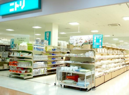 中國の店名は「NITORI」。ターゲットは地方都市の20-30歳の若い夫婦だ。初の店舗は4000-5000點の商品を販売し、家具のほかタオルや食器などの生活雑貨を売る。また、インテリアの総合案で、客の目線をひきつける。