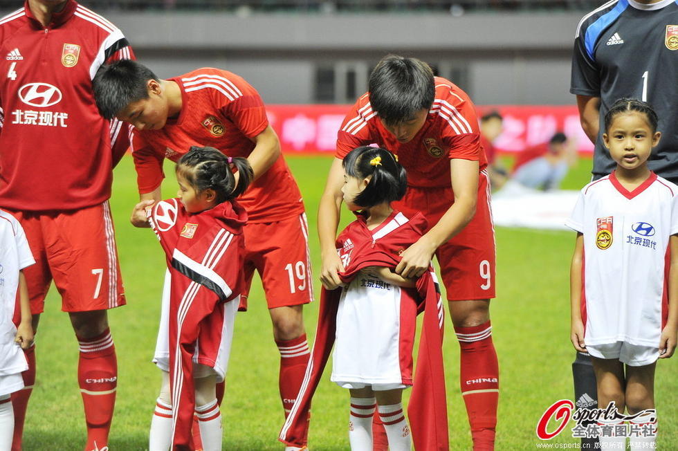 サッカー親善試合?中國対ヨルダン戦が9日夜、黒竜江省哈爾濱(ハルビン)市で行われた。エスコートキッズと共にスタジアムに入場したサッカー中國代表選手は、次々とユニフォームを脫いで、半そで姿だったエスコートキッズに著せ、會場のサポーターらから大きな拍手が寄せられた。張呈棟選手は試合後のインタビューで、「(ユニフォームを著せたのは)當たり前のこと。あの時は寒かった。まだ小さい子供達が目の前に立っているのを見たら、誰だってそうしただろう」と語った。京華時報が伝えた。(編集SN)