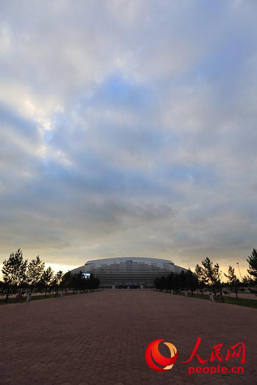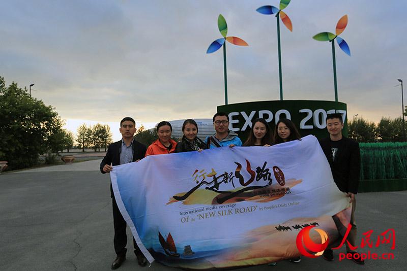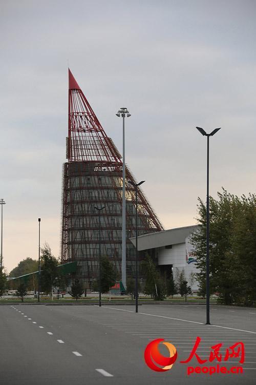人民網(wǎng)「新シルクロードを行く」チームは8日、建設(shè)が勢いよく進(jìn)行中の2017年アスタナ萬國博覧會會場の工事現(xiàn)場を訪れた。メーン會場の一部がすでに完成済みだ。