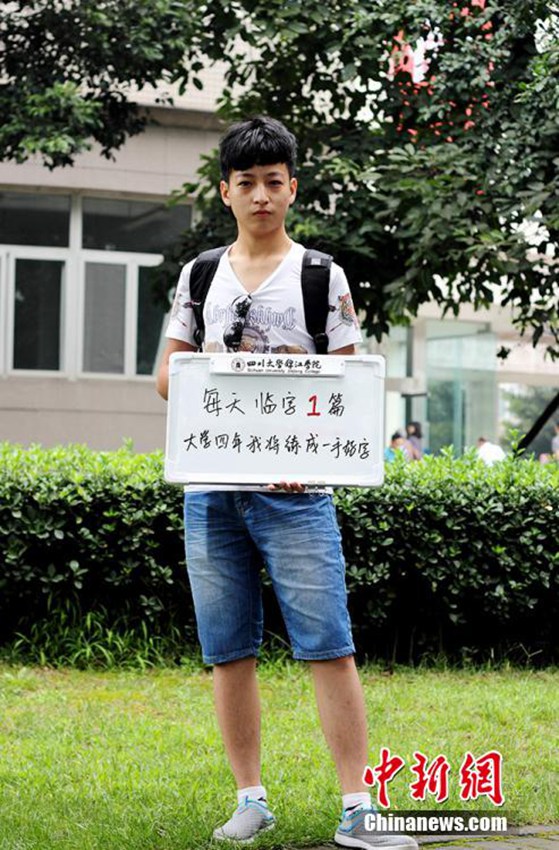 「毎日単語を3個(gè)覚えると、大學(xué)4年で7300の単語を覚えられる」、「毎日4元貯金すれば、大學(xué)4年で5840元貯金ができる」、「毎日1つ臨書すれば、大學(xué)4年で書の達(dá)人になれる」、「每月3冊(cè)本を読めば、大學(xué)4年で144冊(cè)の本が読める」、「毎日50回腹筋運(yùn)動(dòng)をすれば、大學(xué)4年で8パックの腹筋になれる」、「每月1か所に旅行すれば、大學(xué)4年48カ所を観光できる」、「毎日1枚寫真を撮れば、大學(xué)4年で1460枚の生活の瞬間を記録できる」…