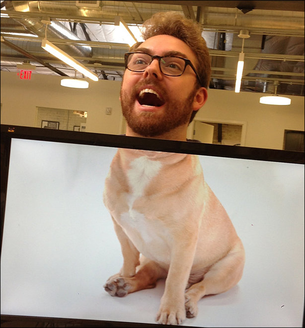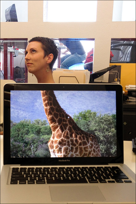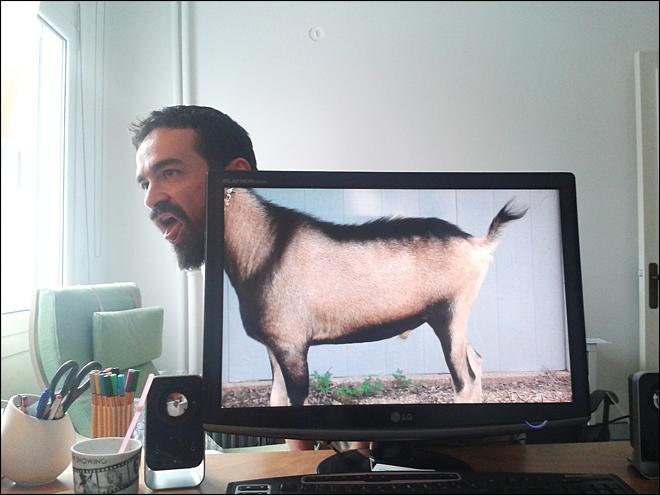 こうして作られた奇妙な合成寫真では、畫面に頭の部分が隠された動物の體が表示され、人間がその畫面の後ろに立ってユニークな表情を作ると、動物の體と「つながる」姿となる。