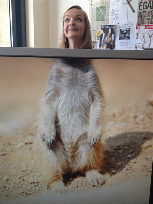 英國?ロンドンに住むサラリーマンんの「オタク」男性2人がこのほど動物からインスピレーションを得て、仕事の合間の退屈な時間をつぶしたいと考えた。コンピュータの畫面の後ろに立って、「人面の獣」の合成した姿を作るというのがそのアイデアで、サラリーマンの間で人気を集めている。中國新聞網(wǎng)が伝えた。
