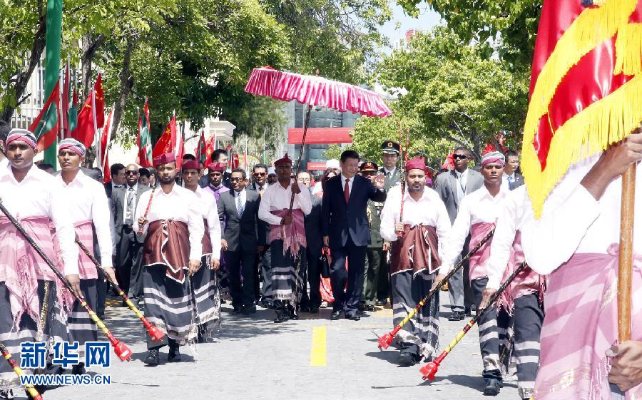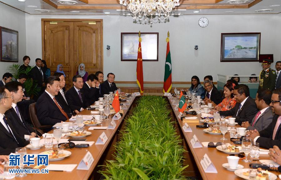 ヤーミン大統(tǒng)領(lǐng)は「モルディブ経済発展への中國側(cè)の積極的な支持と援助に感謝する。習(xí)主席の打ち出した21世紀(jì)の海のシルクロードの建設(shè)という提案は先見に富むものであり、モルディブ側(cè)は完全に支持し、チャンスを捉え、積極的に參加する。中國側(cè)と観光、人的?文化分野の交流や協(xié)力を拡大したい。積極的に措置を講じて中國人観光客の安全と権益を保障したい。中國側(cè)が國際問題において平和共存五原則を遂行していることを稱賛する。気候変動など多國間問題で中國側(cè)との協(xié)力を強(qiáng)化したい」と表明した。(編集NA)